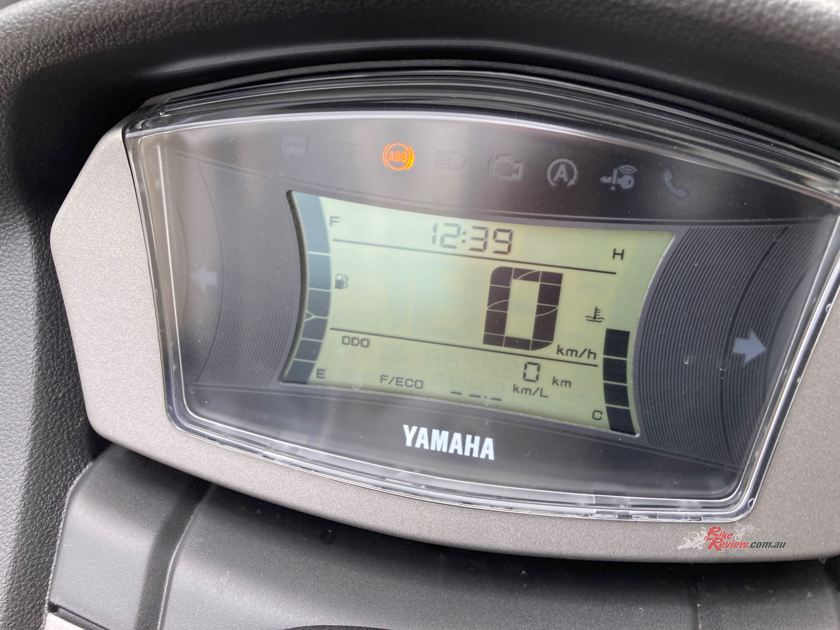 An easy-to-read full LCD instrument cluster shows remaining fuel, water temperature and the current time. It can also display an odometer, trip meter, fuel consumption (current and average), voltmeter and other data. A convenient lever-style switch on the left handlebar cycles through displayed data. Also, when stopped, a maintenance tripmeter can be displayed to show how long until the next oil change or V-belt change.